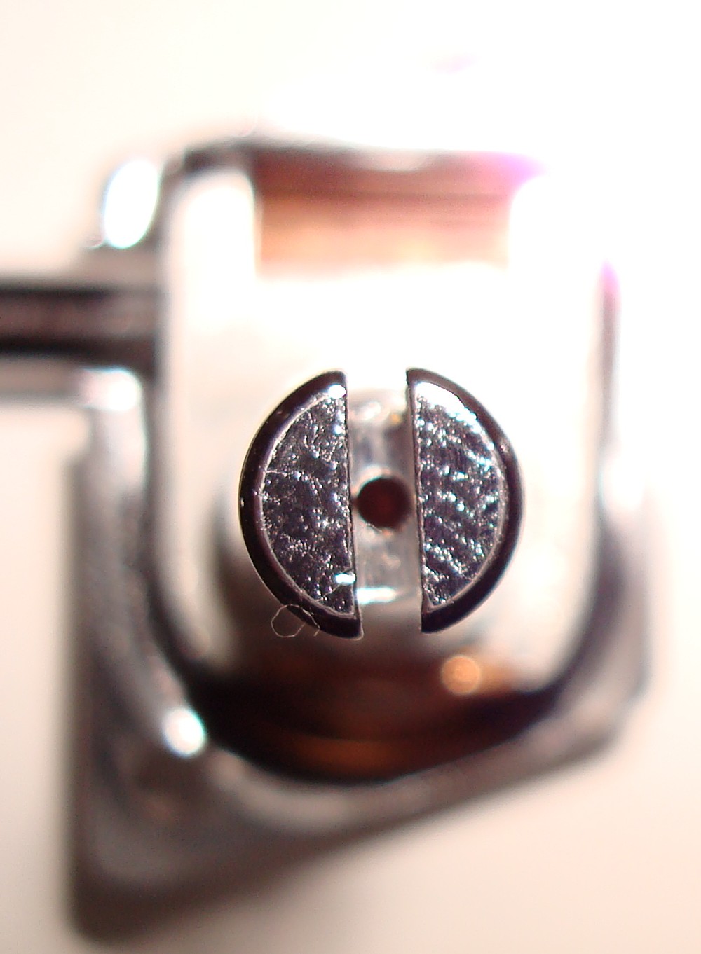 • 1976年前期は、穴径が切り込み溝の幅と同程度だか、切り込み幅も一番大きいので穴径も大きくなっている。また、写真では判らないが、切り込みの深さも一番深い。シャフト頂点の穴に大きく面取りがある。