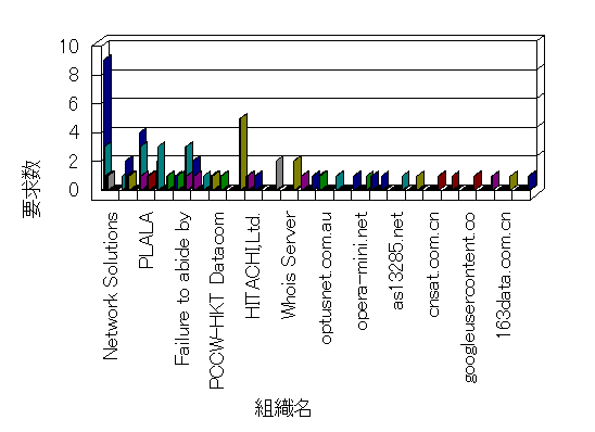 参照組織のサイトには、このサイトにリンクするページがあります。グラフでは、このサイトへのアクセス数に基づいた、上位 10 組織を示します。